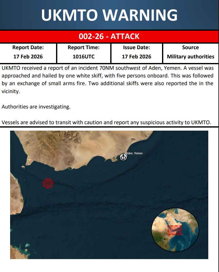 For seafarers transiting the Gulf of Aden and nearby waters, the incident serves as a stark reminder that security risks — including piracy, armed robbery, and regional instability — remain very real despite periods of relative calm.