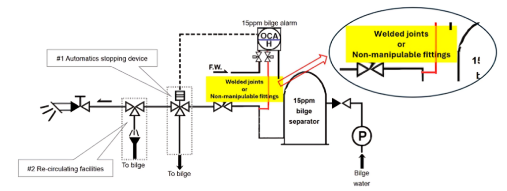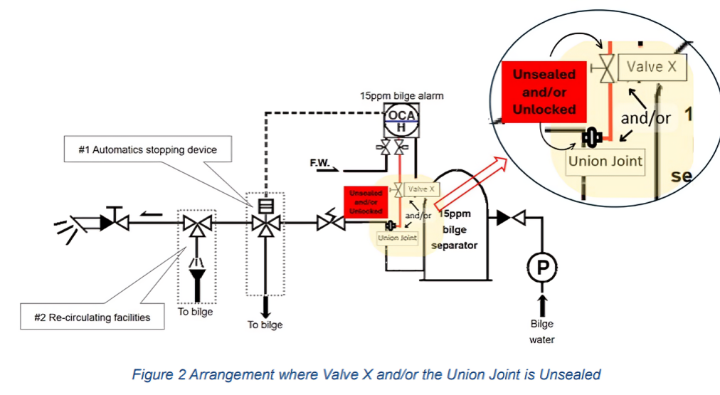 1.1. Where valves (hereinafter ”Valve X”) and/or union joints are fitted on the sample line to the 15ppm bilge alarm: